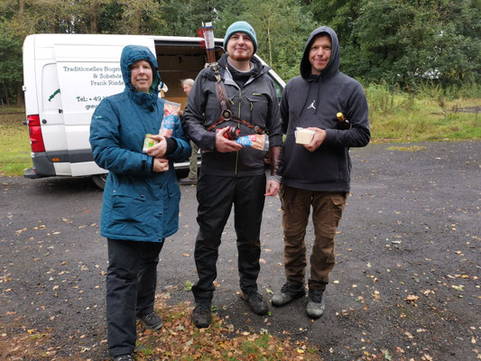 Bella, Daniel, Benjamin und Patrick haben sich bei bestem norddeutschen Grillwetter (starker Wind und Regen) der Herausforderung gestellt und mit nassen Schuhen, zusammengefallenen Federn und